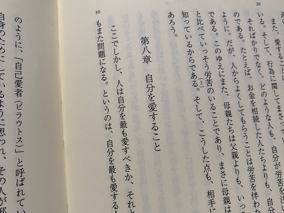 「そこでわれわれとしては、双方の立場の者たちがそれぞれ、自己愛というものをどのような仕方で語っているかを把握すれば、それによってたぶん、事の真相は明らかになるだろう。」(朴一功訳 2002: 428)