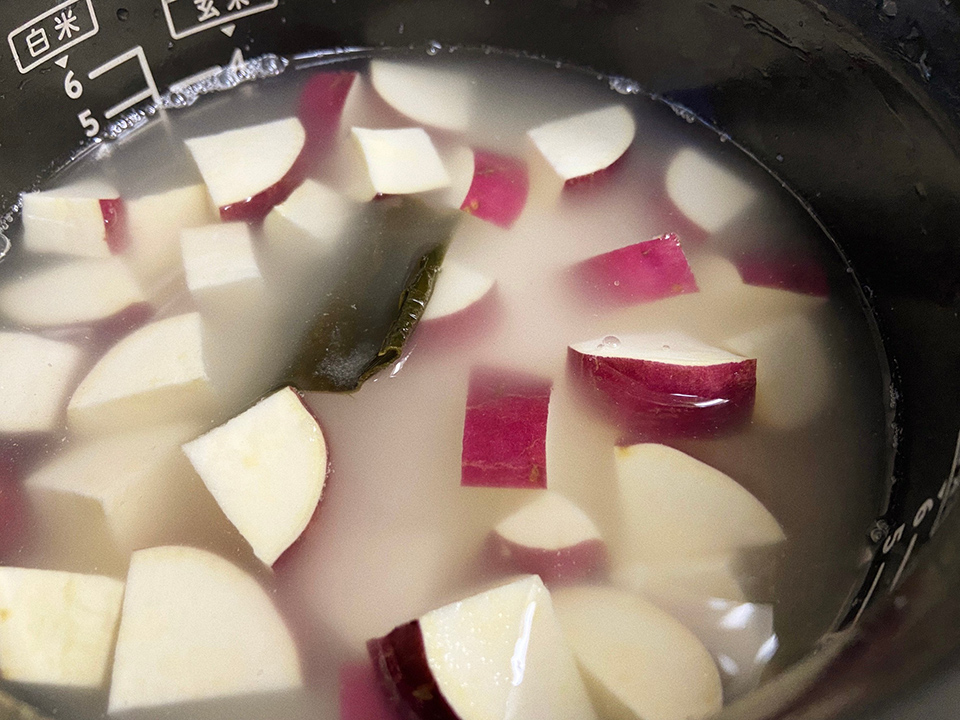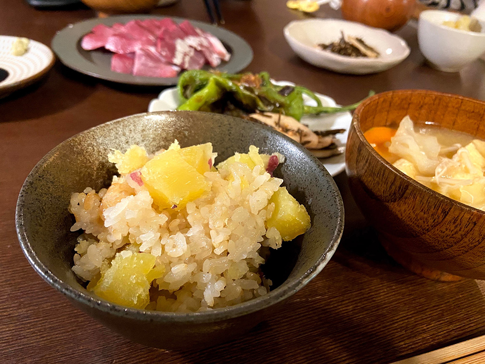 ホクホクとしたさつまいもの食感や甘みが、もっちりと炊きあがったごはんと相性良く、大人も子どももついついおかわりしちゃう美味しさです。