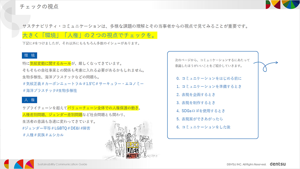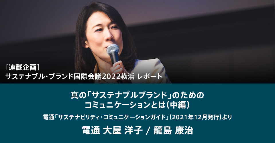 ethicaがメディアパートナーとして参加した「サスティナブル・ブランド国際会議2022横浜」(SB 2022 YOKOHAMA)では多くのセミナー、ディスカッション、ワークショップが繰り広げられ、さまざまな貴重な提言や発表が紹介されました。その中で『真の「サステナブルブランド」のためのコミュニケーションとは 〜電通「サステナビリティ・コミュニケーションガイド」(2021年12月発行)より』と題された講演では、株式会社電通から大屋 洋子さん(PRソリューション局 ソーシャルイノベーション部 チーフディレクター/「電通 Team SDGs」 SDGsコンサルタント)と籠島 康治さん(CXクリエーティブセンター クリエーティブ・ディレクター/ コピーライター「電通 Team SDGs」 SDGsコンサルタント)が登壇。前編に続き、その内容をご紹介します。(記者:エシカちゃん)