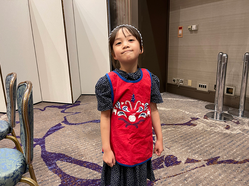 エプロンをつけて嬉しそう