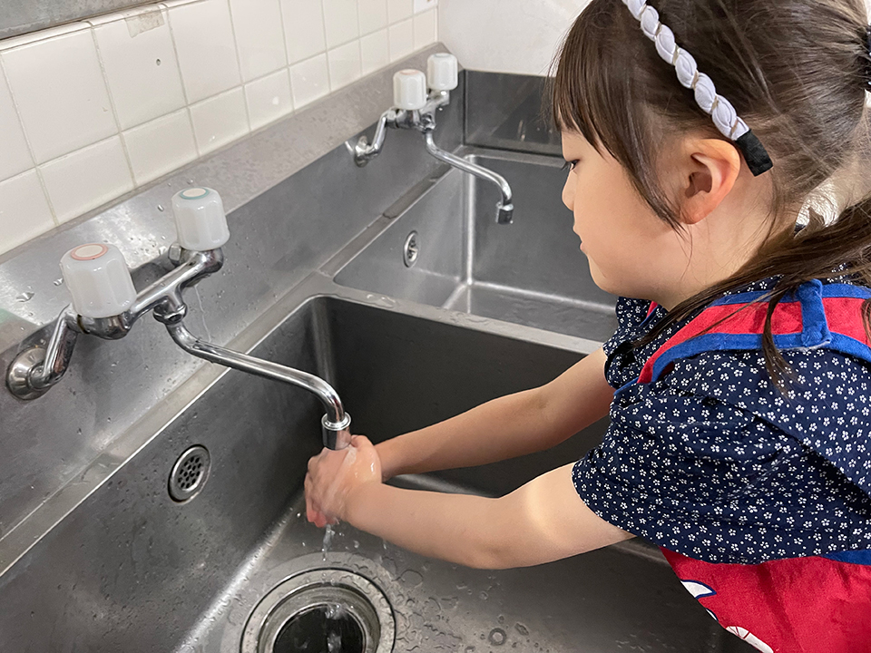 手洗い場で入念に手を洗います