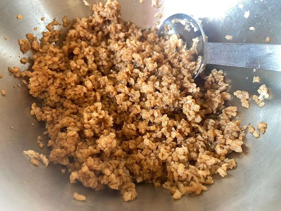ソイミートはお肉の代替品として高タンパクで栄養価が高く、使い勝手が良い一方で、下処理が十分でないと、青臭さや水っぽさを感じることも。
