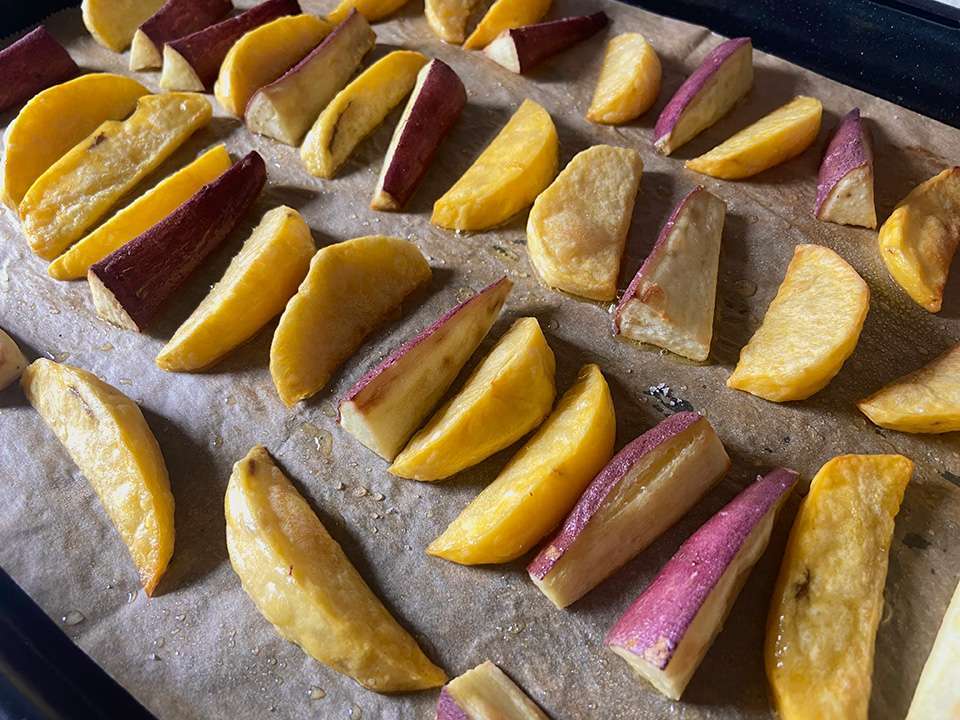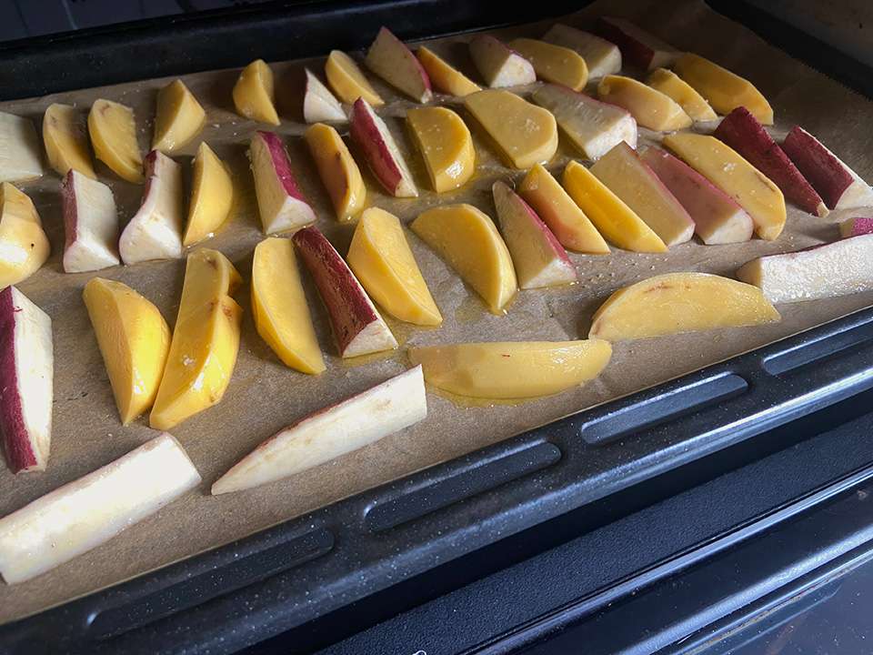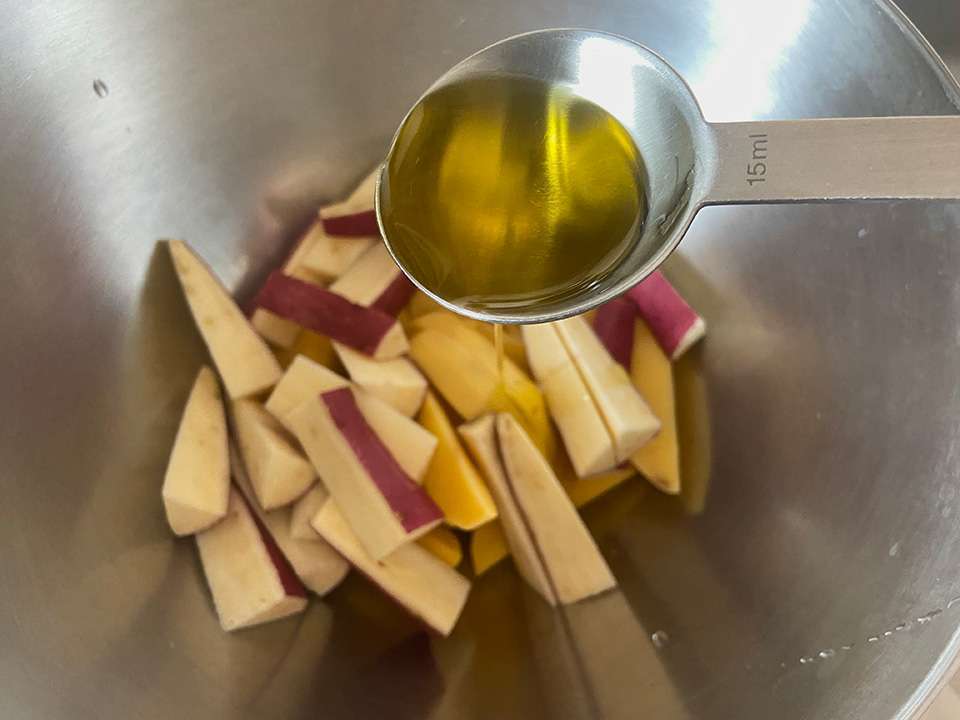 秋じゃがとさつまいもでつくる揚げないフライドポテト