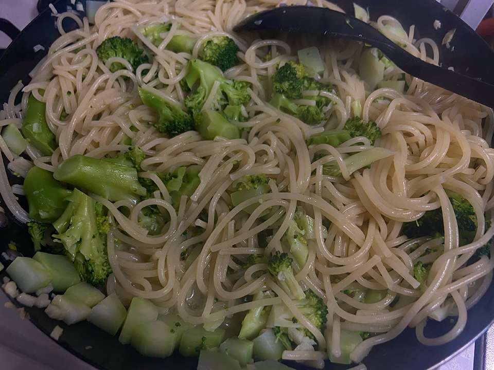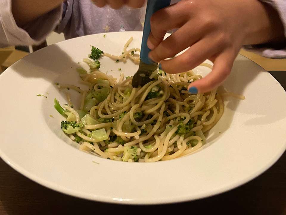 このブロッコリーパスタは、パスタを茹でる際に一緒にブロッコリーも茹でて、フライパンで香りを出したオリーブオイルとにんにくと炒め合わせて味を整えるだけ。