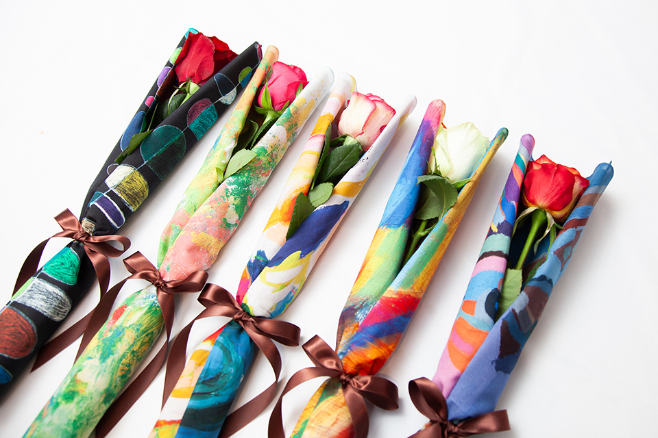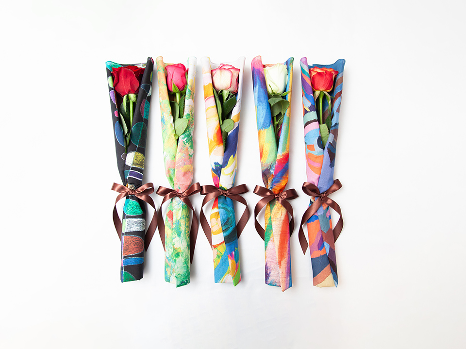 強烈な色、独特の模様、飛び出してきそうな程の力強さを纏うハンカチに包まれた、凛とし1本のバラ。一輪のバラをアートハンカチでラッピングした「1輪ハンカチラッピング ×AFRIKA ROSE」は、寒さに凍えた体にポッと熱を注ぎ込んでくれるような、力強く、また美しい商品です。(記事:エシカちゃん)