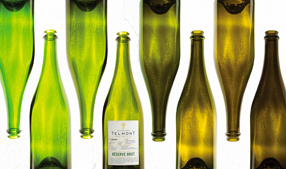 これまで異なる色だと廃棄されていた19万3000本のガラス瓶を、テルモンのシャンパーニュボトルとして使用します。
