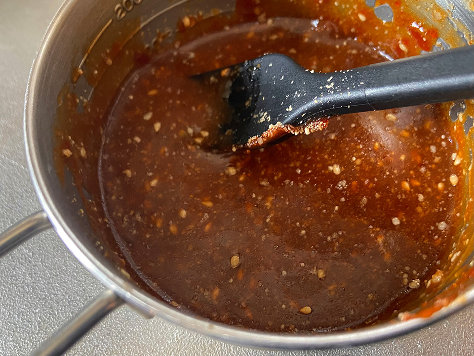 このタレはビビンバ以外でも、サラダやチャーハン、冷麺などにもよく合うので、わが家では特に夏になると多めに作って冷蔵庫に常備しています(冷蔵保存で約2週間ほど持ちます)。
