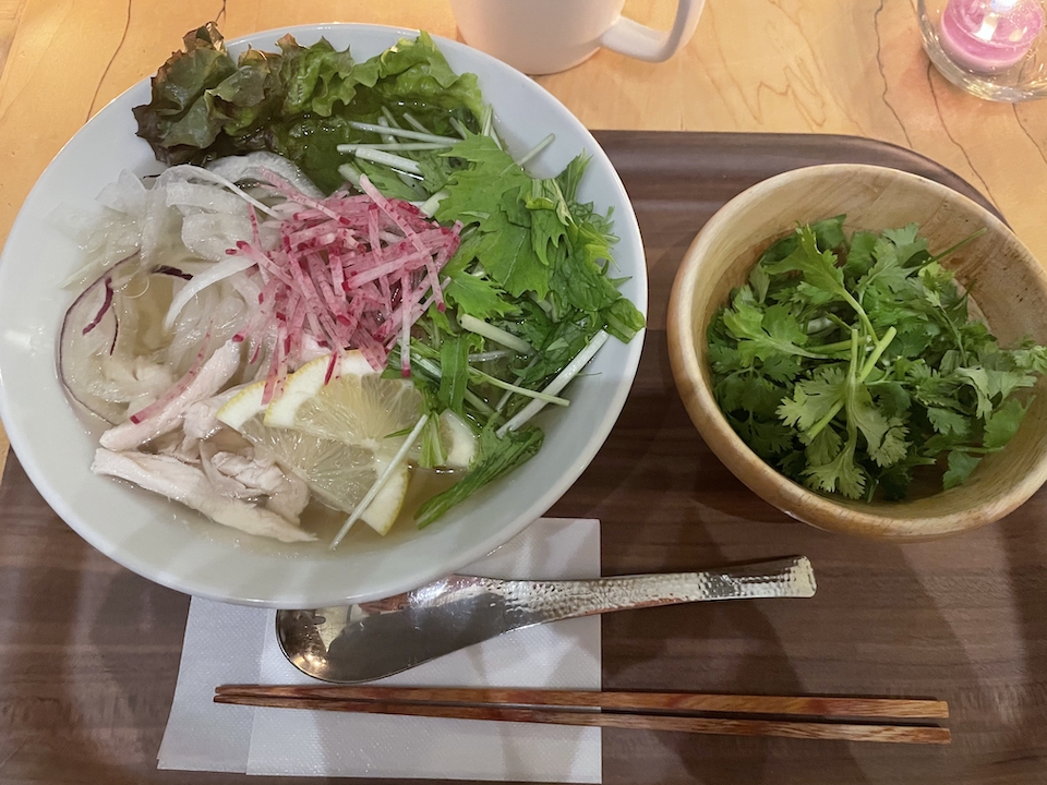 メニューは、大好きなパクチー大盛りの鶏肉のフォー。野菜の旨みが溶け出た優しいスープに、身体がみるみると温められていきました。