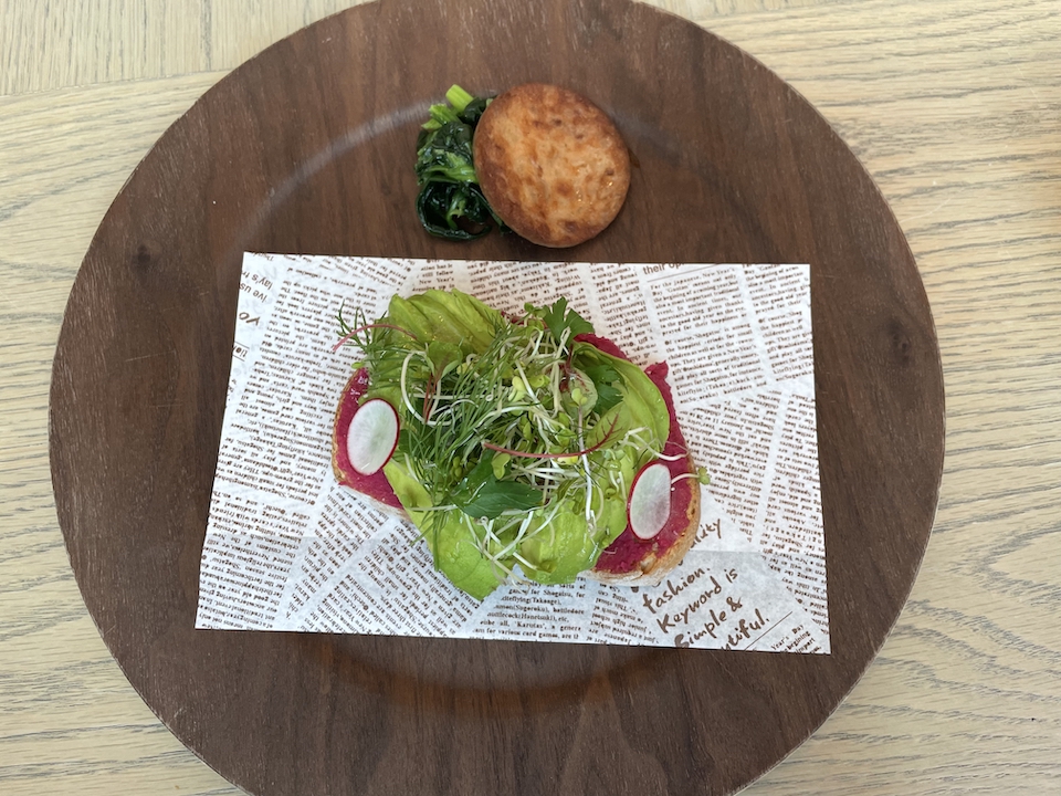アボガドのまろやかさと、大豆のハムのコラボレーションは、何とも素敵なテイストです。野菜にもしっかりと味があり、食べ応え十分の朝食でした。