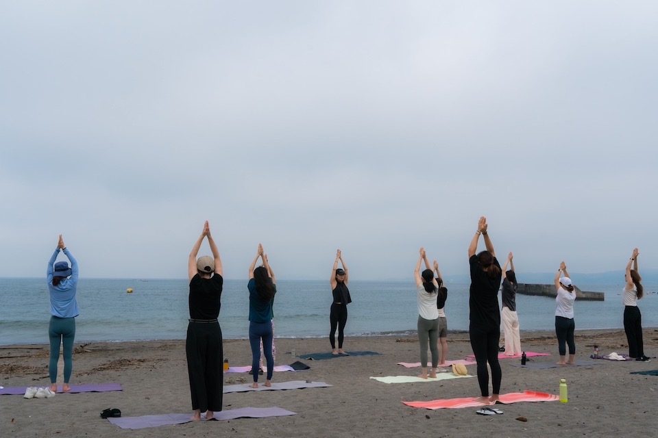 ゴミ拾いの後は、そのままビーチに残ってヨガを行います。