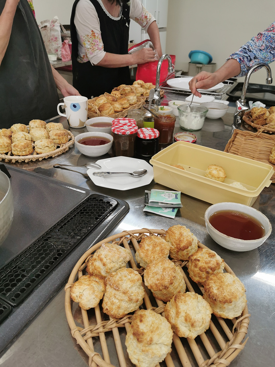 『オカネイラズ八ヶ岳南麓』から生まれた『季節のてしごと八ヶ岳』でメンバーたちと共にスコーンを作って試食