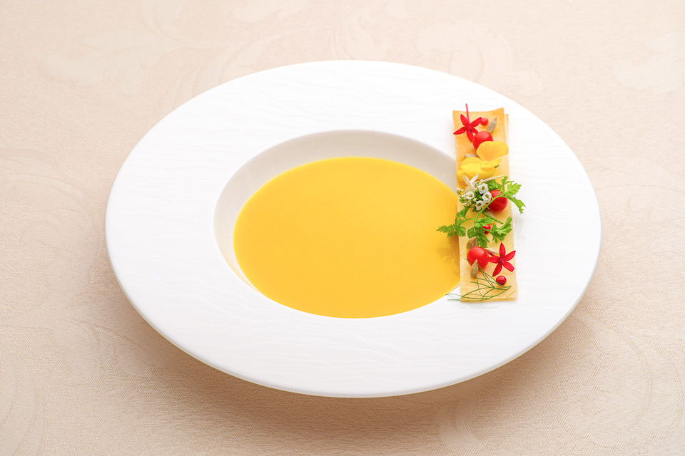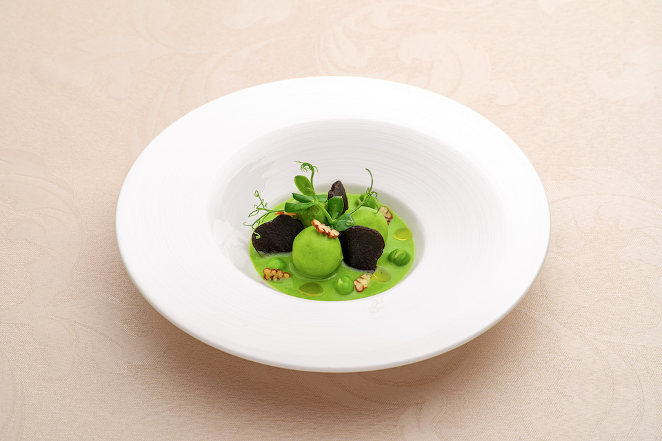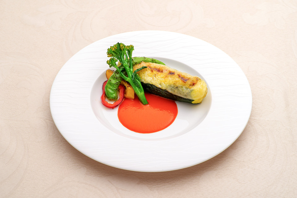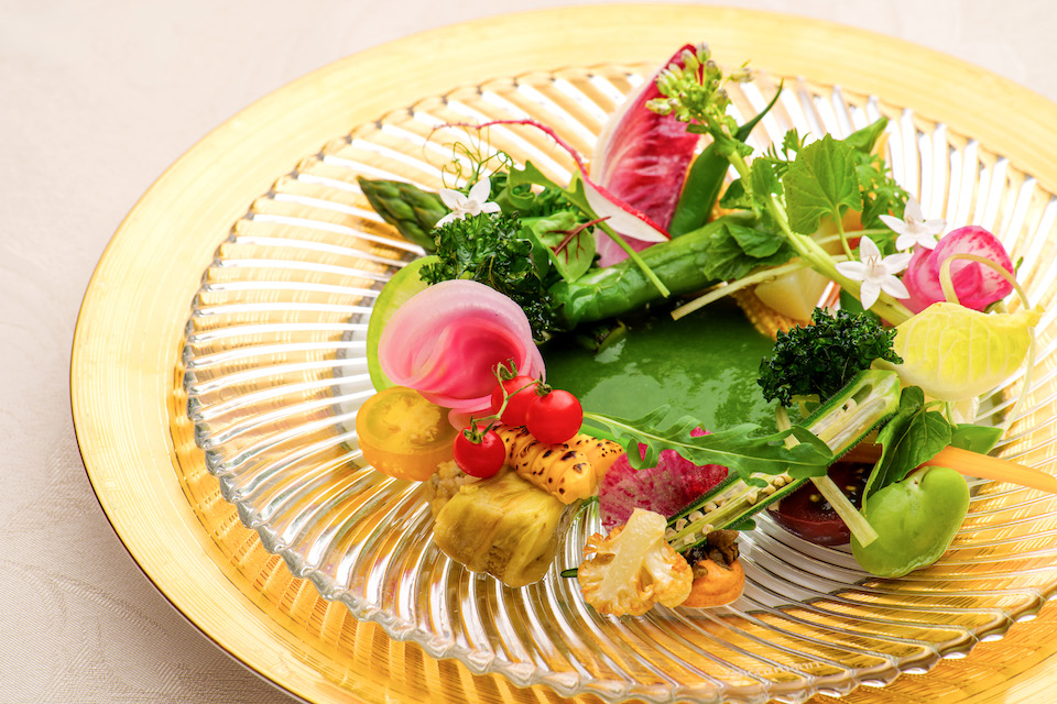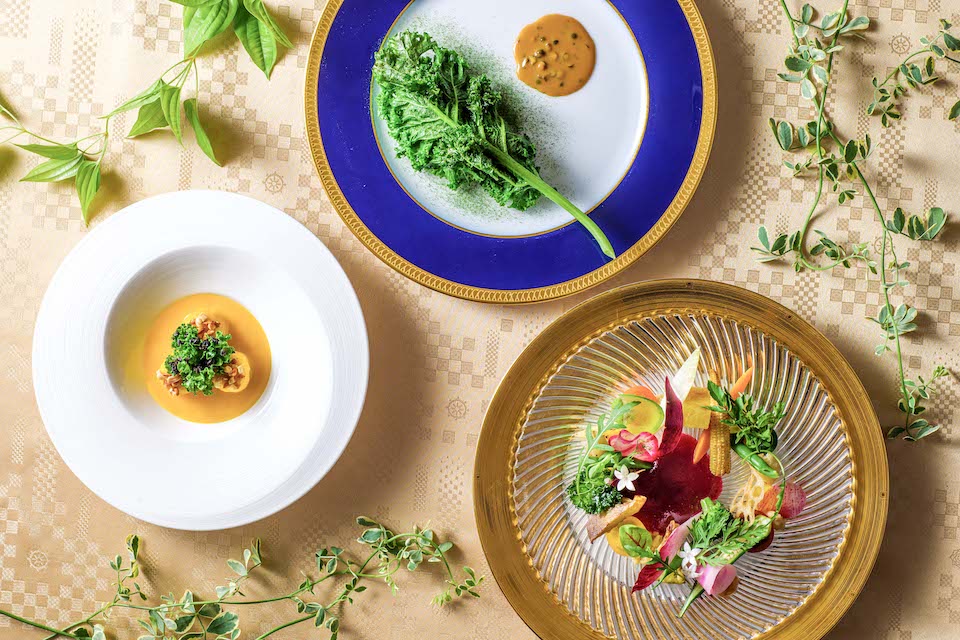 業界を牽引する使命感すらも感じさせる帝国ホテル 東京が、多様化する現代の価値観を尊重する形で、ホテルウェディングに新たなコンセプトを打ち出しました。その一つが婚礼メニューのリニューアル。中でも編集部が注目するのは植物性食品のみで作られたサステナブルコースの「Espoir(エスポワール)」です。今回そのコース料理の 6皿 (冷前菜、温前菜、スープ、メイン2品、デザート) を体験してきました。