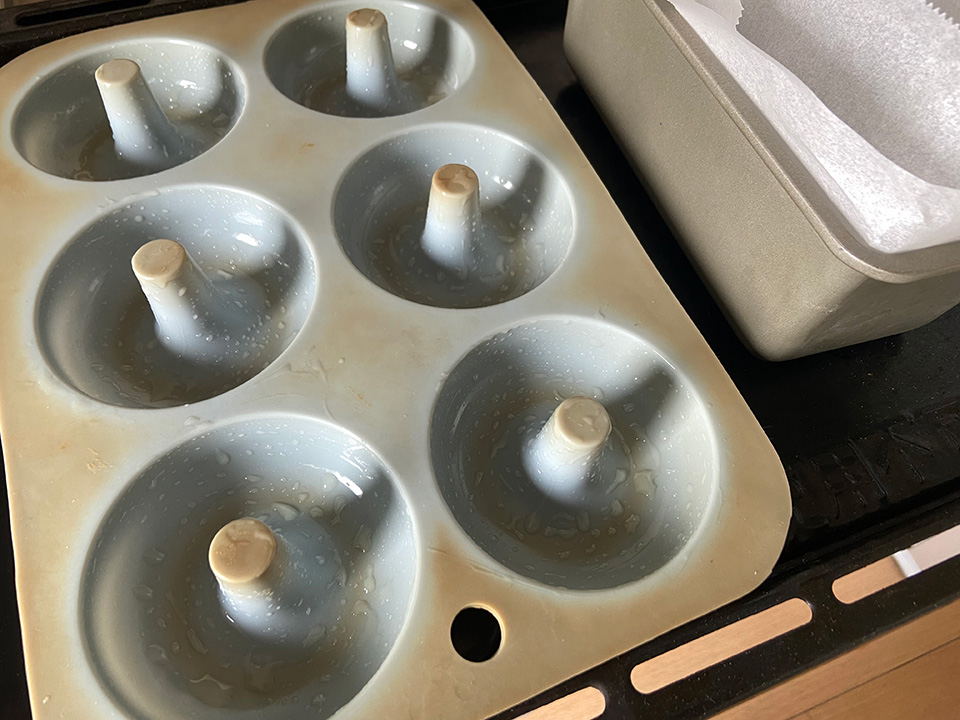 ドーナツ型で作ると見た目が可愛いのはもちろん、お子さんも食べやすく切り分ける手間が省けるといったメリットはありますが、型がなければパウンドケーキ型や深めのホーロー容器などでも大丈夫。