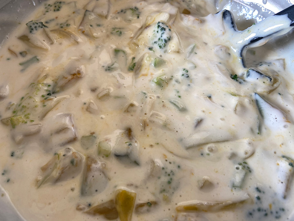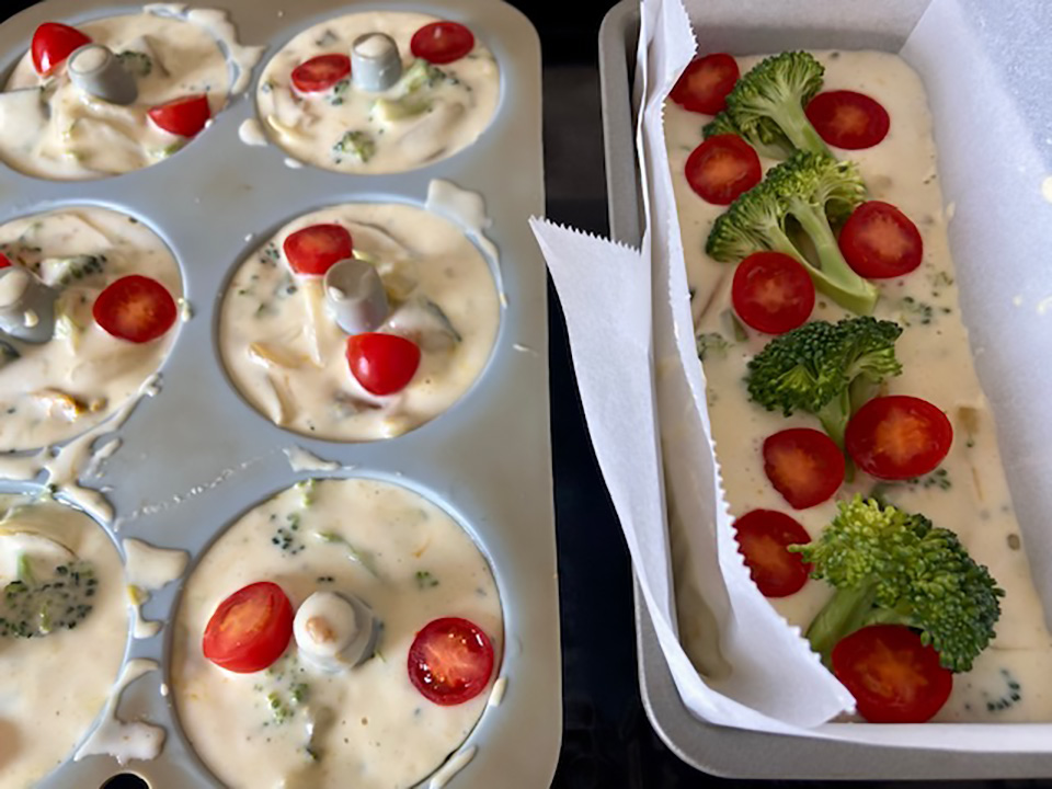 本来は小麦、卵、牛乳、砂糖などを混ぜたベースの生地に、野菜やチーズ、お肉などの具材を加えて作るのですが、米粉や甘酒を使ってプラントベース&グルテンフリーでも食べ応えのあるレシピにアレンジしました。