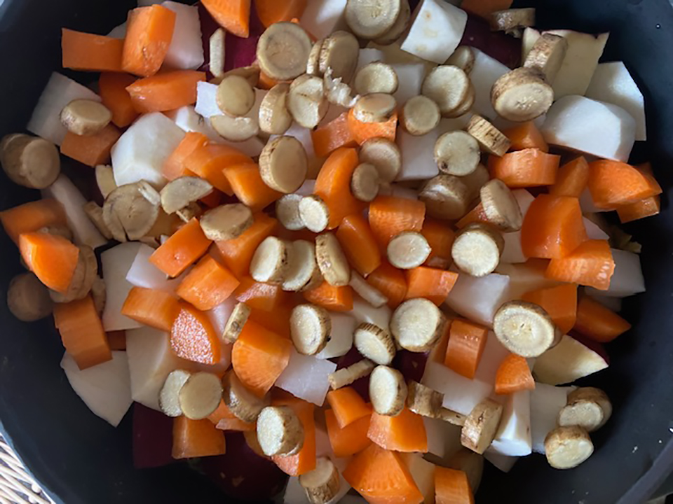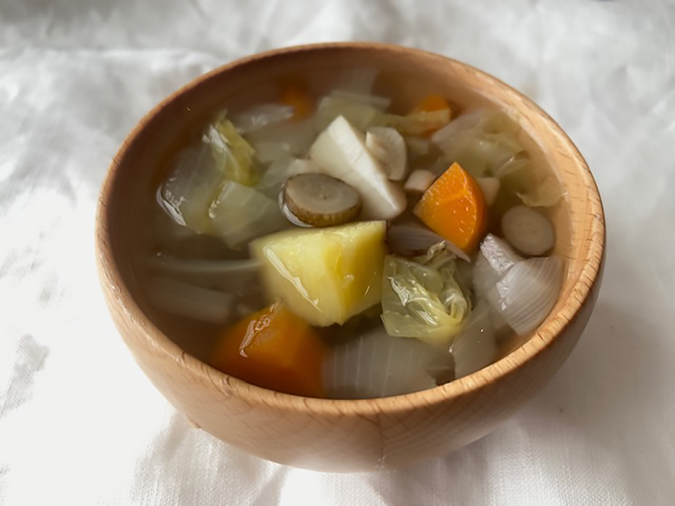 調理法はとても簡単で、陰陽の順に重ねてじっくり煮ていくだけ。野菜の旨みとお塩のみで、体にじんわり染み渡る栄養たっぷりな優しいスープができあがります。