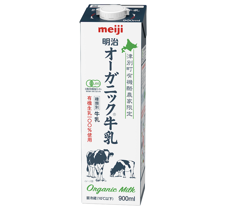 その商品の一つに「明治オーガニック牛乳」があります。北海道網走郡津別町の有機酪農家の人たちと作った有機JAS規格(有機食品について農林水産大臣が定める国家規格)の認証牛乳で、有機農法の考え方に基づいた方法(例えば、化学肥料や農薬を使わずに生産された飼料を与えた牛を基本的に放牧して育てる、予防を目的とした抗生物質等は使わない、等)で飼育された乳牛から搾った生乳のみを使用している牛乳です。