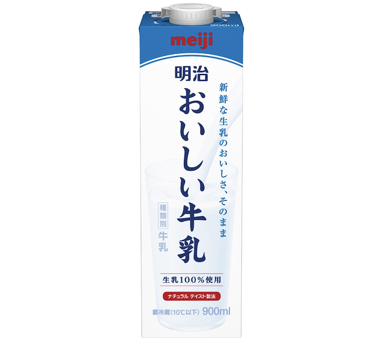 一方で売り場に視点を移して見てみると、明治が商品のサステナビリティを強化していることが伺えます。例えば牛乳ひとつ取ってみても、2002年4月に全国発売を開始したフラグシップ商品「明治おいしい牛乳」が挙げられます。同商品は2022年4月、フードロス削減のために賞味期限を延長して廃棄ゼロを目指すことに加えて、同年7月には、牛乳パックとしてはユニークなデザインである注ぎ口のキャップを、バイオマスプラスチック化することでプラスチック資源循環の強化にも取り組んでいます。