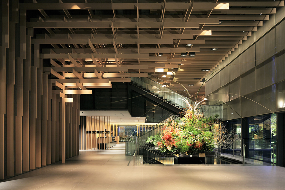 メインロビーをはじめエントランスや外観などの建築デザインを手掛けたのは、日本を代表する建築家・隈研吾氏