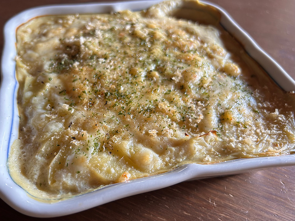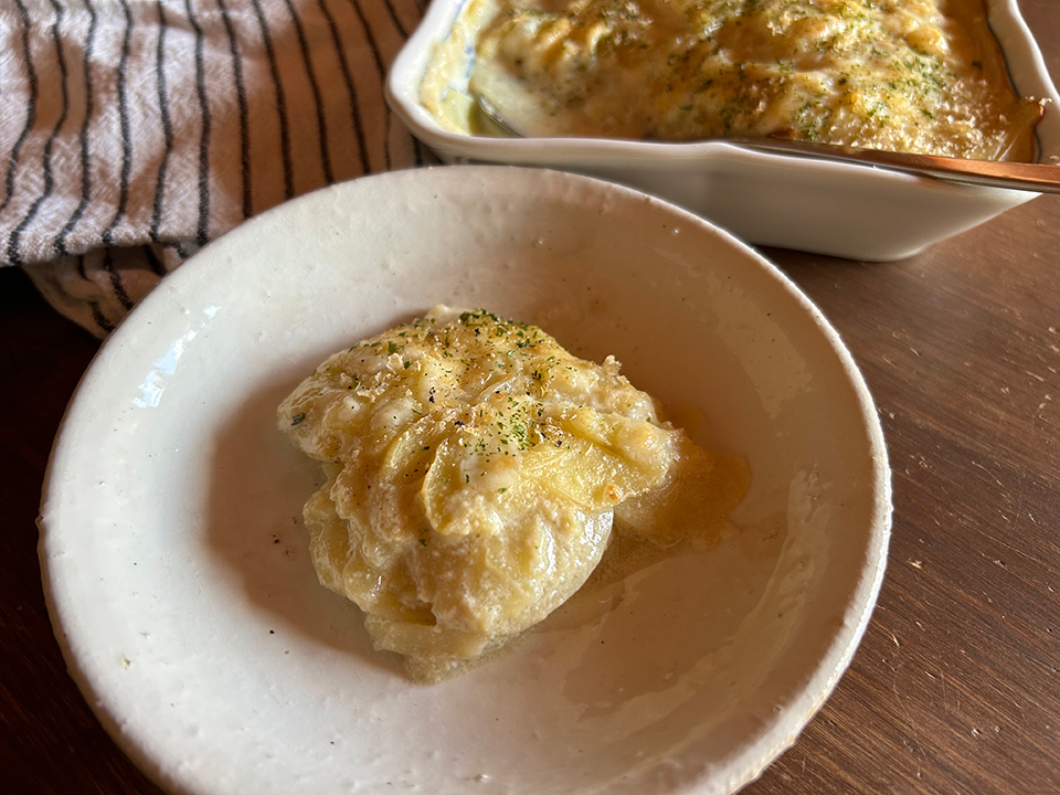 今回ご紹介するのは、じゃがいもの自然なとろみで仕上げる即席の豆乳グラタンです。じゃがいものホクホク感と豆乳のとろりとした優しい味わいで体の中から温まります。
