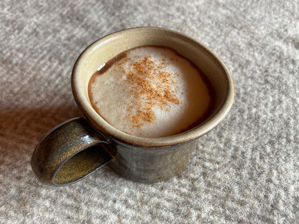③コップに移し、お好みで仕上げにシナモンパウダー、黒胡椒を少々振りかける